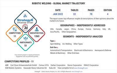 SAN FRANCISCO, June 29, 2022 /PRNewswire/ -- A new market study published by Global Industry Analysts Inc., (GIA) the premier market research company, today released its report titled 'Robotic Welding - Global Market Trajectory & Analytics' . The report presents fresh perspectives on opportunities and challenges in a significantly transformed post COVID-19 marketplace.