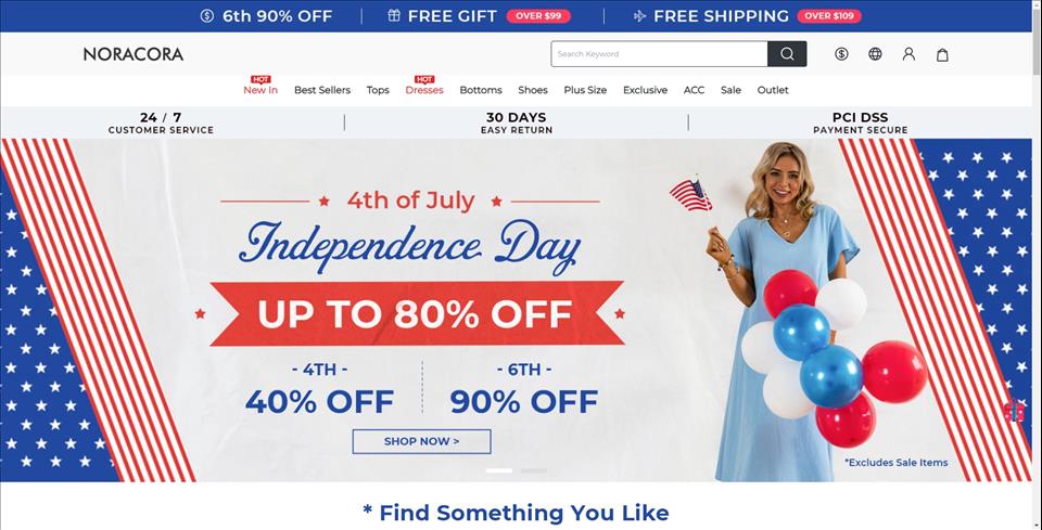Noracora's fashions are available online at noracora.com. The company is currently holding a 4th of July sale with fashions up to 80 % off retail prices.