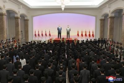 Kim Jong-un paid tribute at the Kumsusan Palace of the Sun, where the bodies of Kim Il-sung and the current leader's late father Kim Jong-il lie in state, on the occasion of the memorial day, the North's official Korean Central News Agency (KCNA) reported, without specifying when the visit was made.