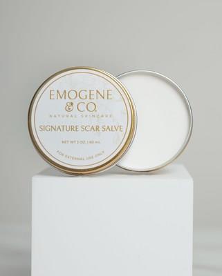 A natural solution for scars, Emogene & Co.'s Signature Scar Salve facilitates healing while reducing the appearance of scars, improving skin's texture for a smoother appearance, and promoting healthy skin and favorable scar tissue with consistent use.