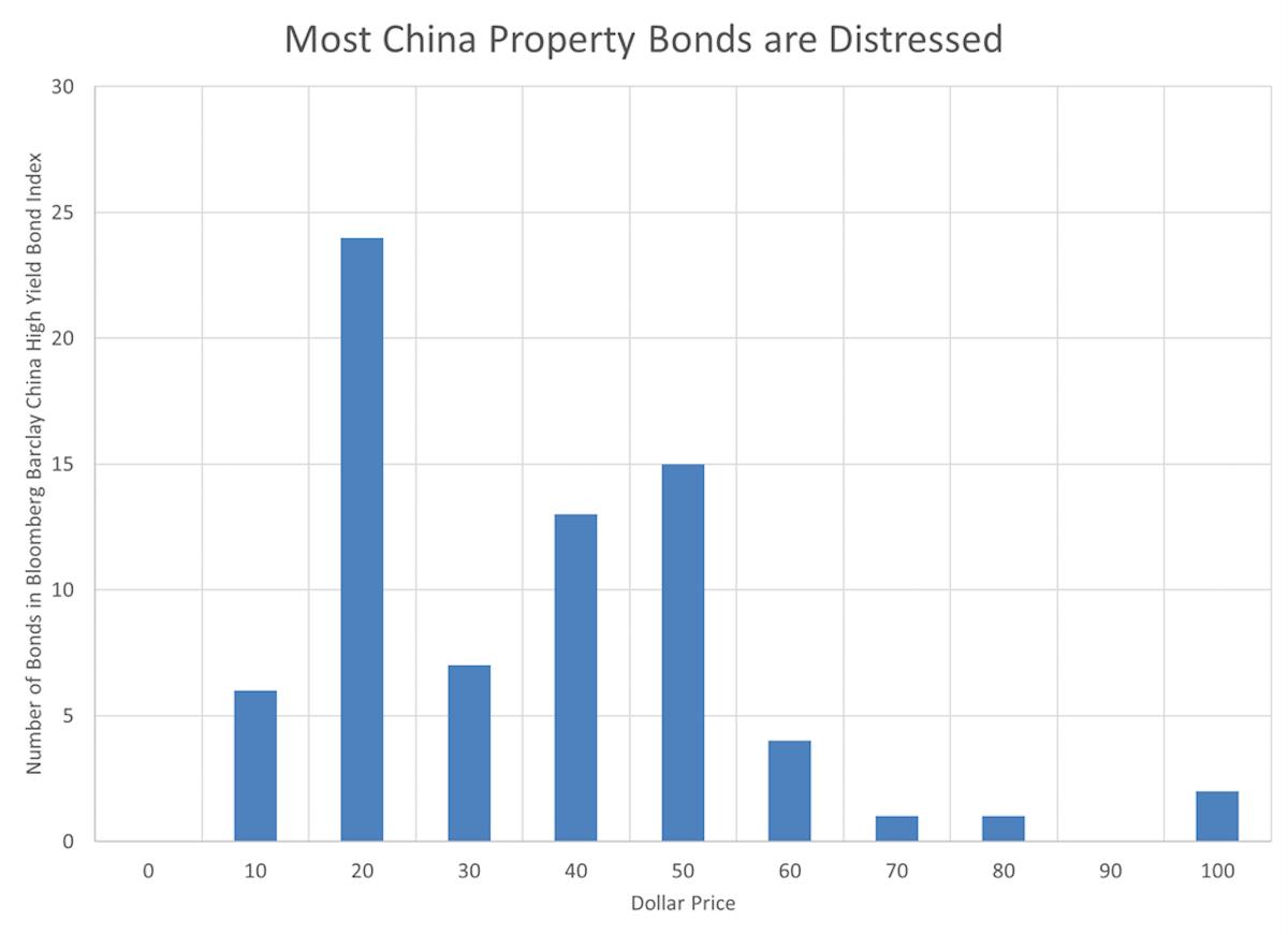 Except for the home equity loan market during America's 2008 crisis, the collapse of China's property bond market ranks as the worst in the history of any of the world's major economies. Bloomberg's China Yield Bond Index, which measures the value of US-dollar-denominated bonds issued by Chinese companies, has lost more than two-thirds of its value since May, as one major developer after another failed to meet coupon payments.