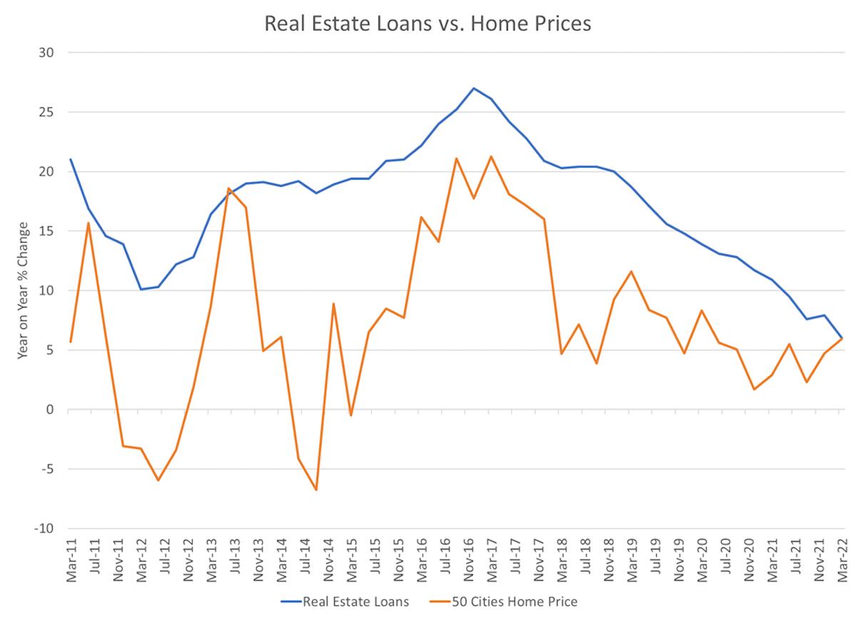 The People's Bank of China began the shakeout in the property market in December 2020, by placing a cap on property loans at China's lenders. This and related measures to restrict credit to the property market slowed the rate of increase of both property loans and housing prices. A combination of Covid-19 pandemic effects and buyer caution effectively froze property sales.