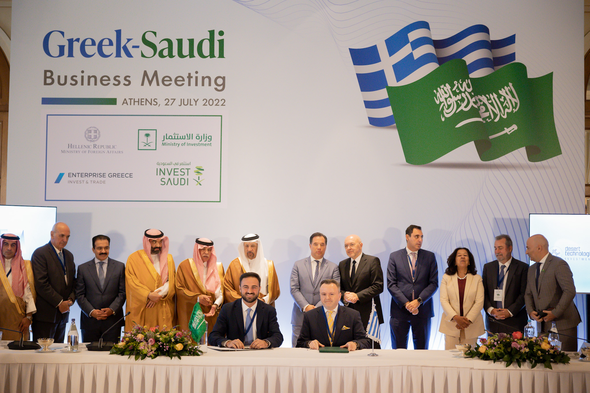 The memoranda of cooperation were signed in the presence of a number of members from both the Saudi and Greek delegations which included the Saudi Minister of Investment, Eng. Khalid Abdulaziz Al-Falih; the Saudi Minister of Commerce and Acting Minister of Media Dr. Majid Abdullah Al-Qasabi; and the Saudi Minister of Communications and Information Technology, Eng. Abdullah Amer Al-Sawaha, as well as the Minister of Development and Investments at Government of the Hellenic Republic Adonis Georgiadis. They were signed by Mr. Khaled Ahmed Sharbatly, CEO of Desert Technologies Investments, Mr. Kostas Apostolidis, Founder and Chairman at Raycap Corporation, and Mr. Evangelos Kamaris, International Business Development Director at MYTILINEOS.