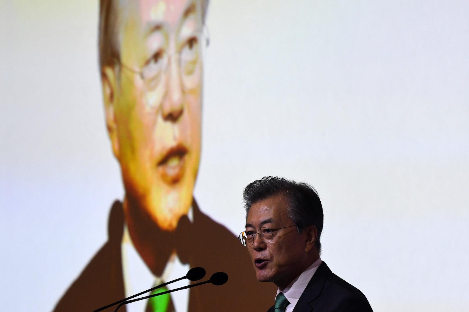 Then-President Moon Jae-in cut a more charismatic figure than Yoon. Photo: AFP / Roslan Rahman