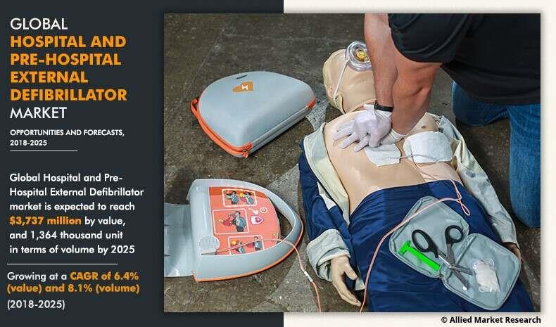 PORTLAND, OREGON, US, August 4, 2022 /EINPresswire.com / -- The increase in the number of sudden cardiac arrests and the increase in the demand for advanced external defibrillators play a major role in the growth of the market. Moreover, increasing adoption of automated external defibrillators in developing countries is expected to boost the demand for external defibrillators in the coming years. External defibrillators are lightweight and portable devices used to deliver a therapeutic shock to a patient's heart in life-threatening conditions, such as ventricular fibrillation, cardiac arrhythmias, sudden cardiac arrest, and pulseless ventricular tachycardia. The Hospital and pre-hospital external defibrillator market is expected to grow at a significant rate during the forecast period due to increase in demand for automated defibrillators, rise in chronic cardiac diseases, increasing awareness of technological advancements in automated external defibrillators. developing countries.