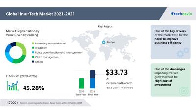 Technavio has announced its latest market research report titled InsurTech Market by Value Chain Positioning and Geography - Forecast and Analysis 2021-2025
