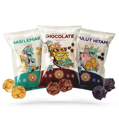 The Kettle Gourmet has selected 3 of their top selling flavours for this range. Nasi Lemak – the top-selling local flavour and also the flavour that inspired The Kettle Gourmet's first local flavours, Pulut Hitam – a sweet-salty tasting popcorn flavour, and of course, Chocolate popcorn – a worldwide favourite and has to be included.