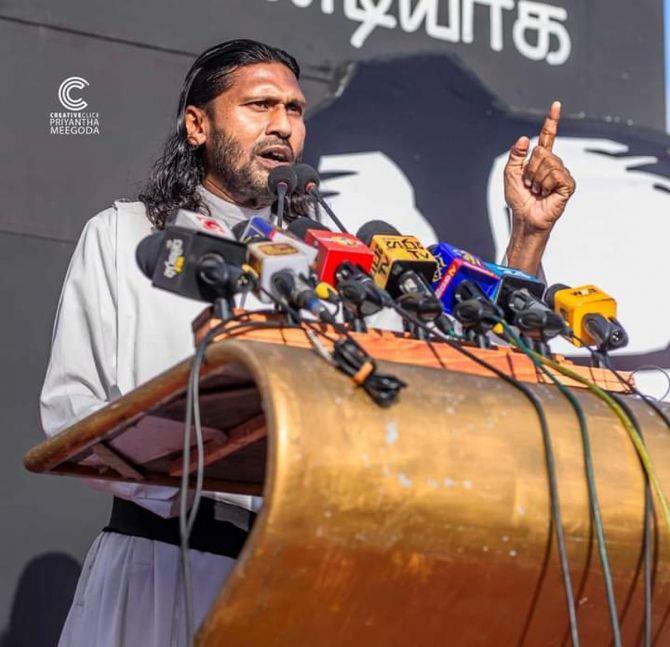 The Catholic priest had been accused of forcibly entering the Presidential Secretariat after it was taken over by protesters.