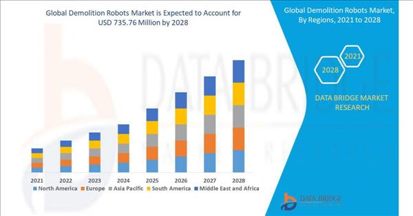 Rising urbanization, infrastructural development and rising construction activities especially in the developing countries are attributable to the growth in demand for demolition robots. Data Bridge Market Research analyses that the demolition robots market will exhibit a CAGR of 16.2% for the forecast period of 2021-2028. This means that the demolition robots market value would stand tall by USD 735.76 million by the year 2028.