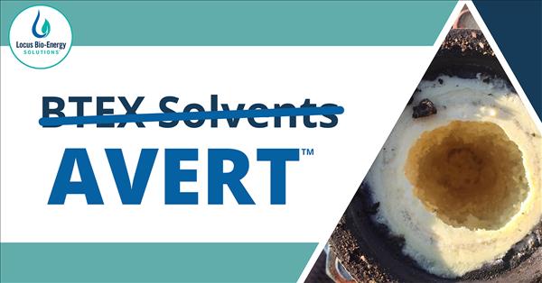 “AVERT is specifically designed to meet the industry's needs for efficient and sustainable oily wax and organic solids dispersion and clean up, while reducing the need for hydrocarbons or BTEX solvents,” says Dr. Megan Pearl, Director of Technology at Locus Bio-Energy Solutions.“The introduction of AVERT is critical at a time when many oil-producing states continue to limit BTEX usage, and when BTEX availability for paraffin control is in short supply—which drives up their costs.”