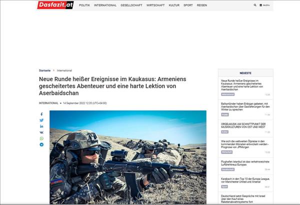 BAKU, Azerbaijan, September 14. The Austrian Dasfazit.at online newspaper published an article about the Azerbaijani Army's successful operations to suppress the Armenian provocations, Trend reports.