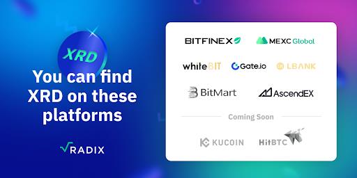 , a smart contract platform for asset-oriented DeFi, has announced that its native cryptocurrency token XRD is now listed on major exchanges including Bitmart, WhiteBIT, and LBANK with KuCoin and HitBTC coming soon.