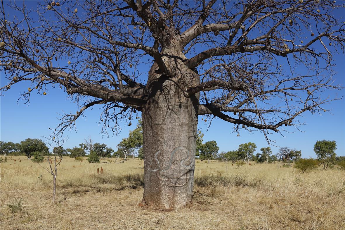 Most of the carved boabs recorded on the Tanami trip feature snakes. Indigenous oral tradition describes a major Dreaming track, King Brown Snake Dreaming (Lingka), which begins near Broome and travels east across the Kimberley region of WA before passing into the Northern Territory. Our survey area was located along this track.