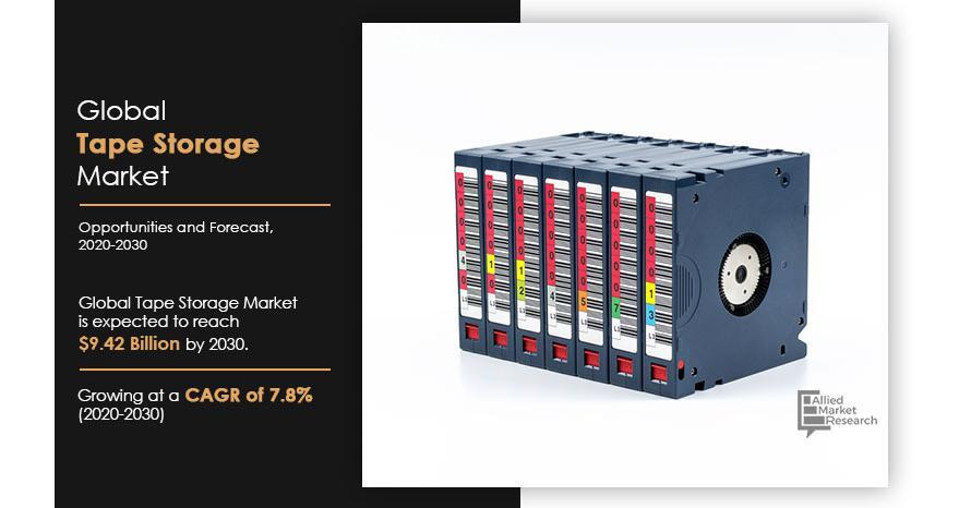 According to the report published by Allied Market Research, the global tape storage market was pegged at $4.31 billion in 2019 and is estimated to hit $9.42 billion by 2030, registering a CAGR of 7.8% from 2020 to 2030. The report provides an in-depth analysis of the top investment pockets, top winning strategies, drivers & opportunities, market size & estimations, competitive landscape, and changing market trends.