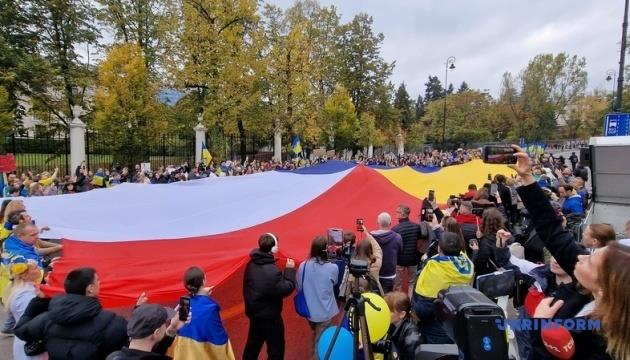 (MENAFN- UkrinForm) A symbolic 'referendum' on the transfer of the Russian embassy to Poland's ownership was held in Warsaw on Saturday. The action was attended by several thousand Ukrainians, Poles, and representatives of other nationalities, who came to the event flying Ukrainian and Polish flags and posters against Russian aggression, an Ukrinform correspondent reports.