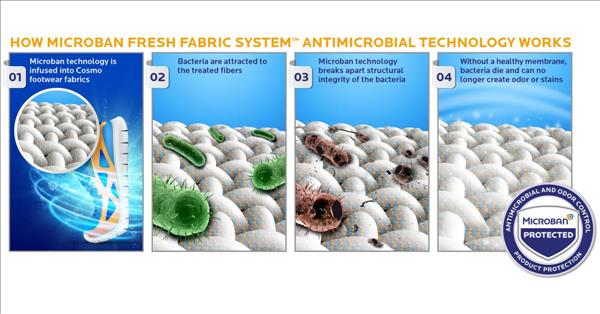 Cosmo has adopted the new Microban Fresh Fabric System™, combining Microban® antimicrobial technology and quality control with its own superior fabric finishing capabilities to deliver high quality footwear textiles that consistently meet stringent odor control and antimicrobial performance standards. Josh van Dernoot, President of Cosmo, explained:“We wanted to use a non-metal solution compatible with sustainable textile manufacturing processes, in line with our company ethos and to match the recent shift in the textile industry. The Microban Fresh Fabric System is the perfect option for us, as it delivers the eco-friendly, non-heavy metal alternative that footwear brands are looking for.”