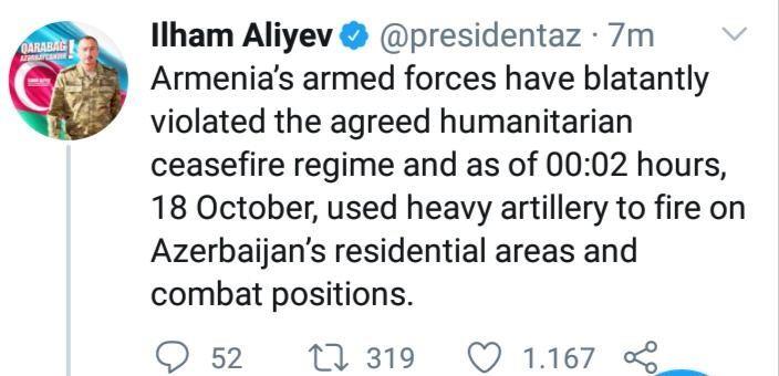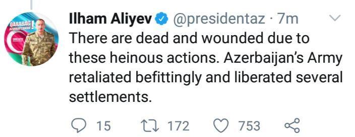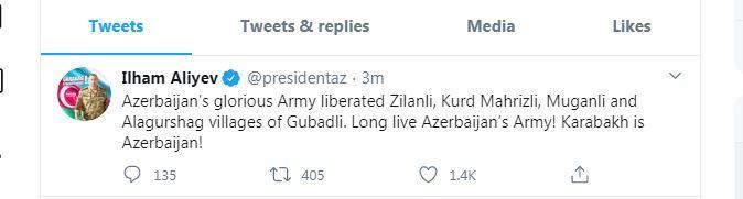 - President Ilham Aliyev shared a on Twitter about the liberation of