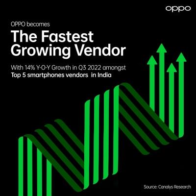 (MENAFN- IANS) New Delhi, Oct 27 (IANS) Global smart device brand OPPO on Thursday revealed it has emerged as the fastest-growing vendor (year-on-year) among the top five vendors in India, according to the Q3 2022 shipment report by market research firm Canalys.