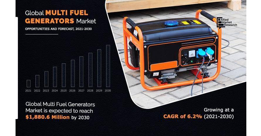 The global multi fuel generators market is projected to reach $1,880.6 million by 2030, growing at a CAGR of 6.2% from 2021 to 2030.