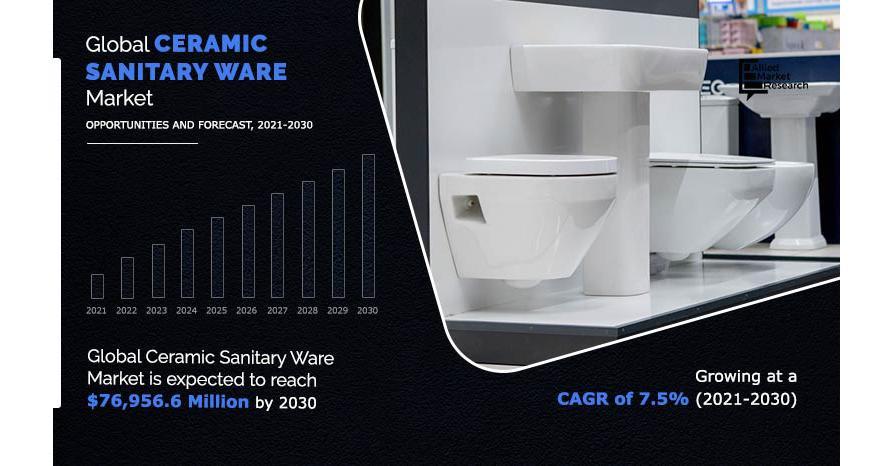 PORTLAND, OR, UNITES STATES, November 9, 2022 / / -- The global was valued at $36,544.8 million in 2020, and is projected to reach $76,956.6 million by 2030, registering a CAGR of 7.5% from 2021 to 2030. Ceramic sanitary wares include a variety of equipment and fixtures that are used for sanitary and internal plumbing applications. Water closets, bath tubs, basins, and sinks are gaining high traction in the ceramic sanitary ware industry. These goods are manufactured from a variety of raw materials, the majority of which are tri-axial compounds, including quartz, feldspar, and clay. Ceramic sanitary ware products are cost-effective, easy to maintain, and scratch & chemical resistant. Thus, multiple benefits associated with ceramic sanitary wares flourish the growth of the global market.