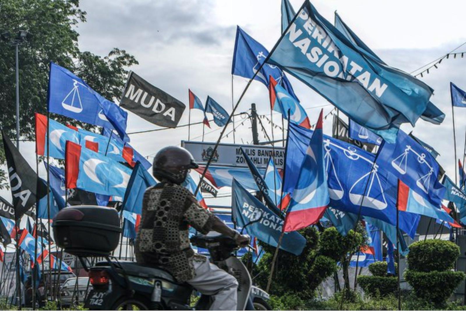 Competing coalitions fly their flags on the campaign trail ahead of Malaysia's November 19, 2022 election. Photo: Twitter / Benar