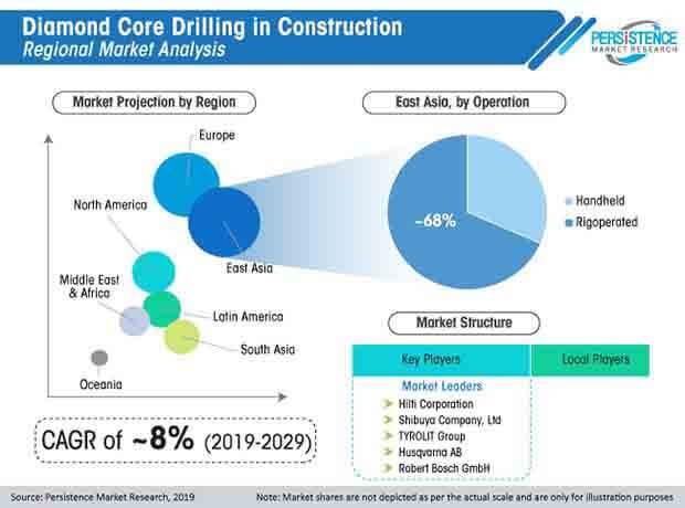 Persistence Market Research recently published a research study on the diamond core drilling in construction market, which includes the global industry analysis 2014-2018 and forecast 2019-2029. It offers a detailed value-volume analysis of the diamond core drilling in construction market, along with insights via BPS analysis in (US$ Mn), market attractiveness analysis, and Y-o-Y growth on the basis of operation, drilling technique, and region. The volume analysis of the diamond core drilling in construction market has been considered in units (number of diamond core drilling in constructions), and data has been provided for the historical period ranging from 2014-2018 and forecasted period up to 2029 with 2018 as the base year.