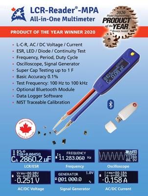 Award Winning All-in-One Multimeter LCR-Reader-MPA, 0.1% basic accuracy, 100 kHz test frequency, LCR/ESR, AC/DC Voltage, Frequency meter, Diode/LED Tester, Signal Generator, Optional Bluetooth module and Ring Coil tester