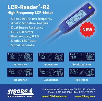 WATERLOO, ON, Nov. 29, 2022 /PRNewswire/ -- The LCR-Reader digital multimeter family from Siborg Systems Inc. was first introduced in 2014 as a successor of Smart Tweezers LCR-meter with a budget LCR-Reader device for LCR and ESR measurements. Major effort was undertaken in 2017 to increase the accuracy and test frequency of LCR-Reader that resulted in LCR-Reader-MP, the first ever tweezer-meter with 100 kHz test frequency and basic accuracy of 0.1 % that was released in 2018. In 2019 another project started aiming a new generation of LCR-Reader-MP with a reduced size and improved device performance. In 2020 lcr-reader-mpa was released and it received the Product of the Year 2020 Award from Plant Engineering Magazine. Next project started in 2020 to develop an even higher frequency device LCR-Reader-R2 that has just been released and is available for sale. The new device has 250 kHz test frequency and built-in Analog Signature Analysis, a modern tool for component testing including in-circuit test.