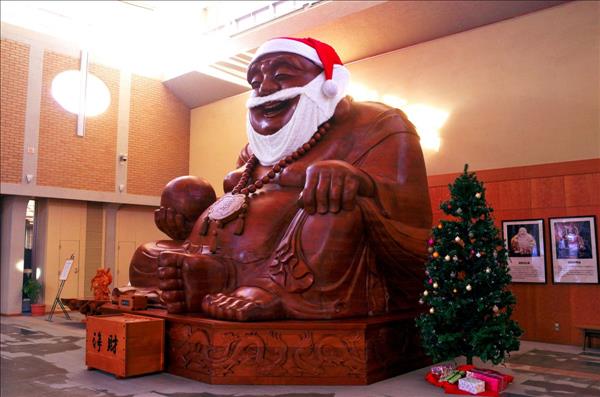 Hotei's statue in Tokyo's Maitreya Temple. However, not everyone in japan is convinced that Hotei is the Japanese Santa Claus. In Japan it is still Santa Claus, not Hotei, who gives children presents on Dec. 25. Still, every year in December, revelers put a Santa hat and beard on the Hotei statue in Tokyo's Maitreya Temple, or Mirokuden, which shows how common the identification of Hotei with Santa Claus has become.