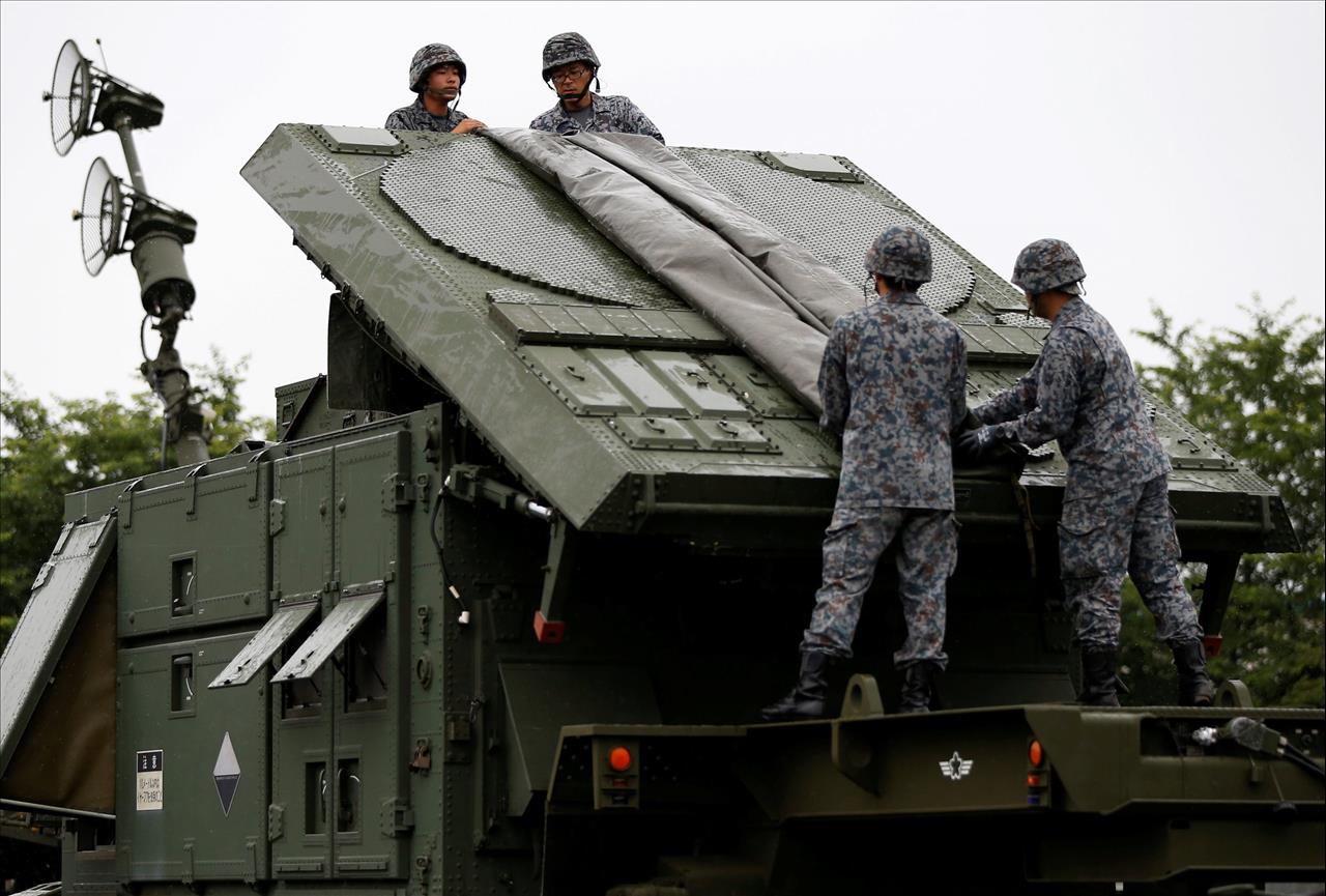 Japan Self-Defense Forces (JSDF) soldiers position the PAC-3 missile unit. Photo: Agencies