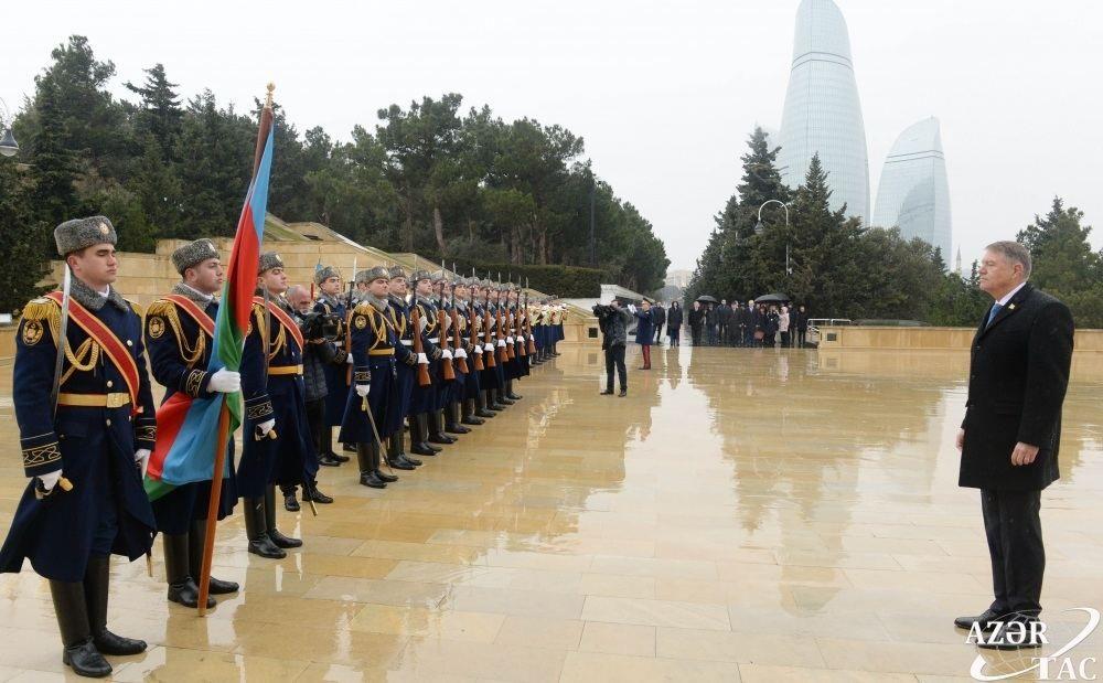 Romanian President Klaus Iohannis Visits Alley Of Martyrs In Baku