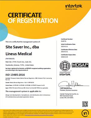 The certifications were awarded based on passing a rigorous two stage audit conducted by Intertek, an international quality assurance and audit organization. The certificates allow Lineus Medical to enter into international markets with SafeBreak Vascular, the company's flagship product.