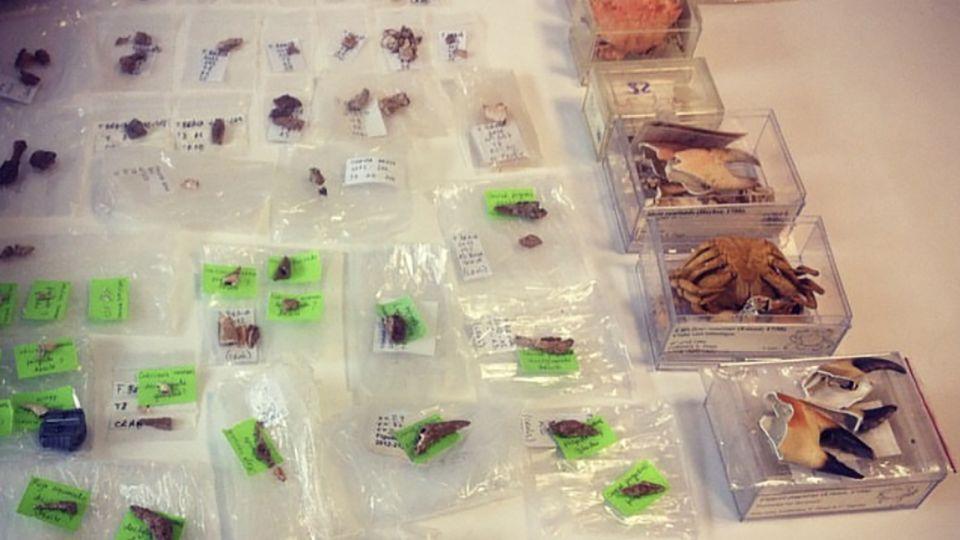 Crustacean remains found at the Figueira Brava cave. Photo courtesy of Mariana Nabais.