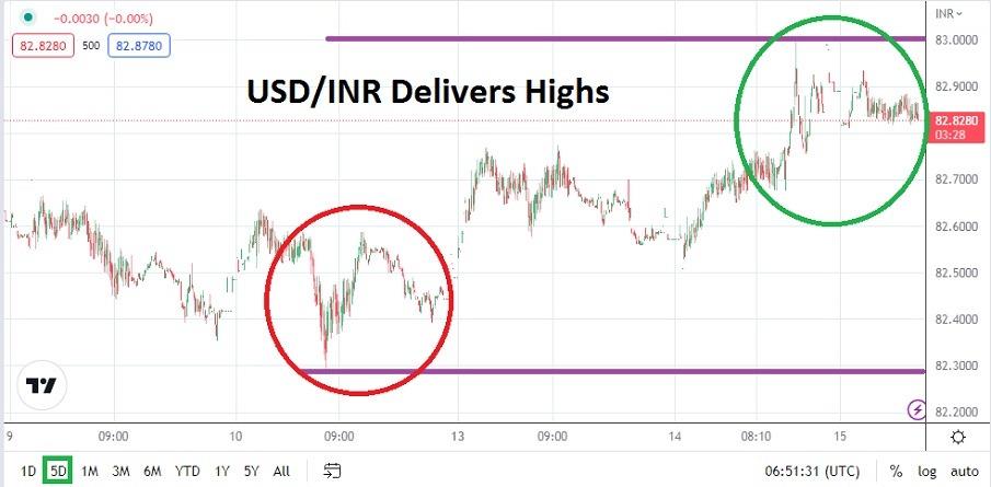 The USD/INR is clearly within sight of record high values, which were made in October of 2022 when the currency pair traded near the 83.3000 level. Yesterday's high water mark did not burst above the 83.0000 level, but trading results near the important psychological mark were certainly a talking point. Financial houses now have to readjust their outlooks and consider the possibility the U.S. Fed will raise interest rates in March and in the months ahead until it feels inflation has been defeated.