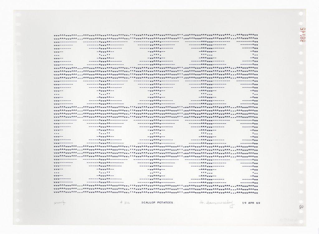But as curator Leslie Jones told Artnet News, the exhibition was some 10 years in the making. Its spark was not NFT art, but the gift to LACMA of a series of witty computer drawings created by geometric painter Frederick Hammersley in 1969.