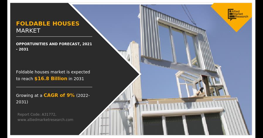 PORTLAND, UNITED STATES, UNITED STATES, February 20, 2023 /einpresswire.com / -- The foldable houses market has grown exponentially in recent years, with an increase in the demand for more affordable and efficient living solutions. The global foldable houses market size was valued at $7.1 billion in 2021, and is projected to reach $16.8 billion by 2031, growing at a CAGR of 9% from 2022 to 2031.