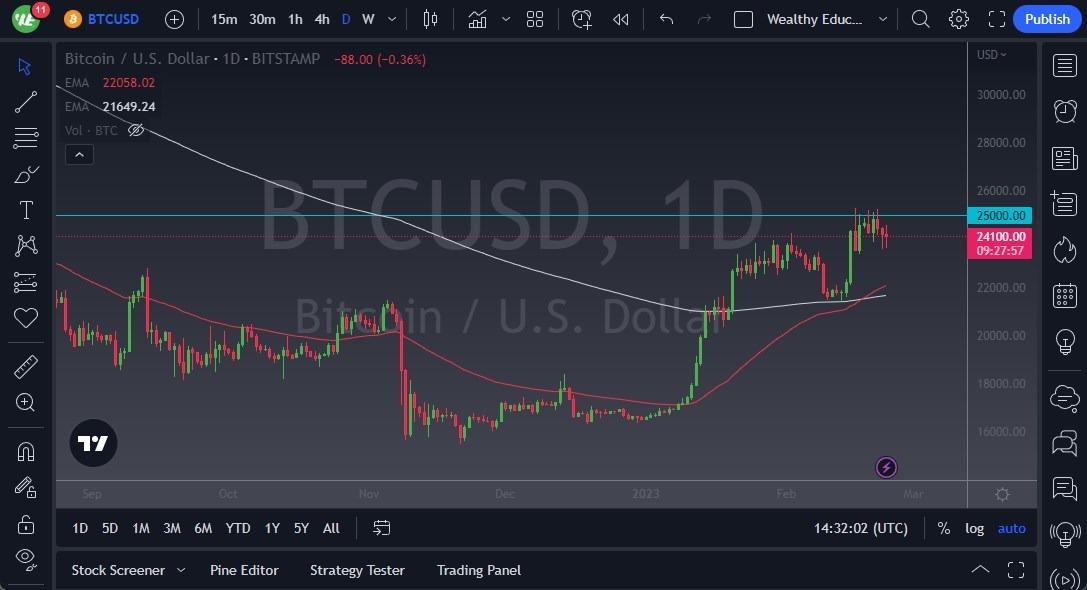 At the end of the day, price is truth, suggestively following the markets and allowing them to do whatever they are going to do. Try not to overthink it, because quite frankly there are so many moving pieces at the moment that it's very difficult to get aggressive in one direction or the other. We have recently seen a big move in Bitcoin, so pullback probably is needed by both the buyers and the sellers at this point.