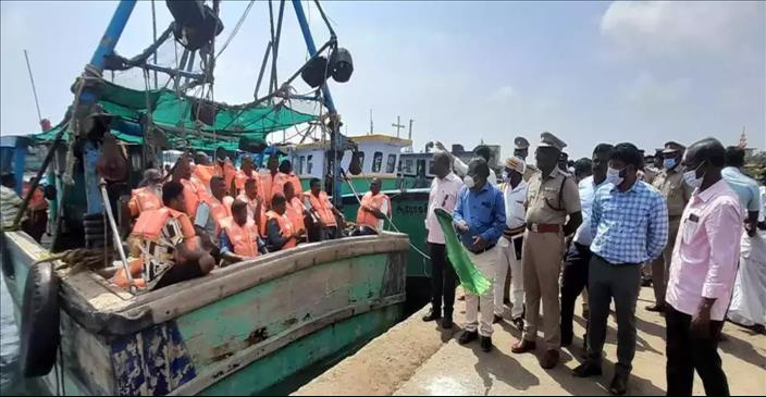 District collector Johnny Tom Varghese flagged off the boats from the Rameswaram fishing harbour.