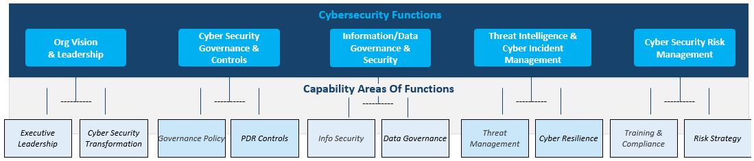 The assessment is built with five cybersecurity functions as the base: Organisation Vision & Leadership, Cybersecurity Governance & Controls, Data Governance & Security, Threat Intelligence & Incident Management and Cyber Risk Management. They are further split into 10 capability areas. Individual assessment areas and cybersecurity success factors are measured to obtain the overall Cybersecurity Maturity Index (CSMI) for the organisation.