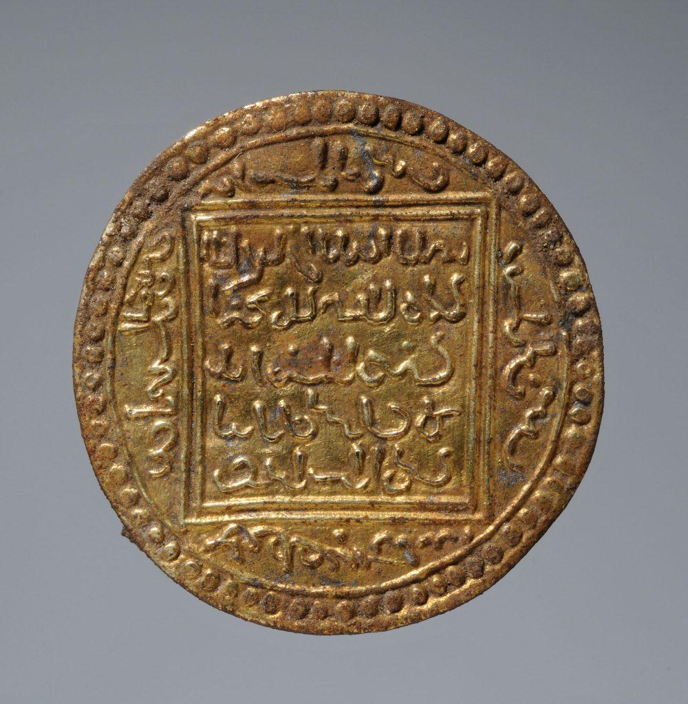 The gold brooch designed as an imitation Almohad gold dinar. Photo: ALSH.
