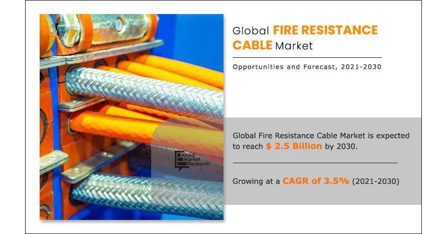 PORTLAND, OREGON, UNITED STATES, March 16, 2023 /einpresswire.com / -- The fire resistance cable market size was valued at $1.8 billion in 2020 and is projected to reach $2.5 billion by 2030, at a CAGR of 3.5% from 2021 to 2030. Fire resistance cable is also known by other names, such as fire-survival cable, fire-performance cable, or fire-resistance cable. These cables have a higher resistance to burning, a higher temperature, more flexibility, less toxicity, and smoke, and produce less of acid gas. Furthermore, such cables must be built of high-quality materials to be acceptable for uses with greater mechanical load signals and to be effective enough to safeguard the power supply during or after a fire incident.