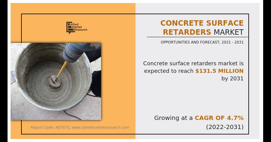 PORTLAND, OR, UNITES STATES, March 27, 2023 /einpresswire.com / -- The concrete surface retarders market size was valued at $82.7 million in 2021, and is estimated to reach $131.5 million by 2031, growing at a CAGR of 4.7% from 2022 to 2031.