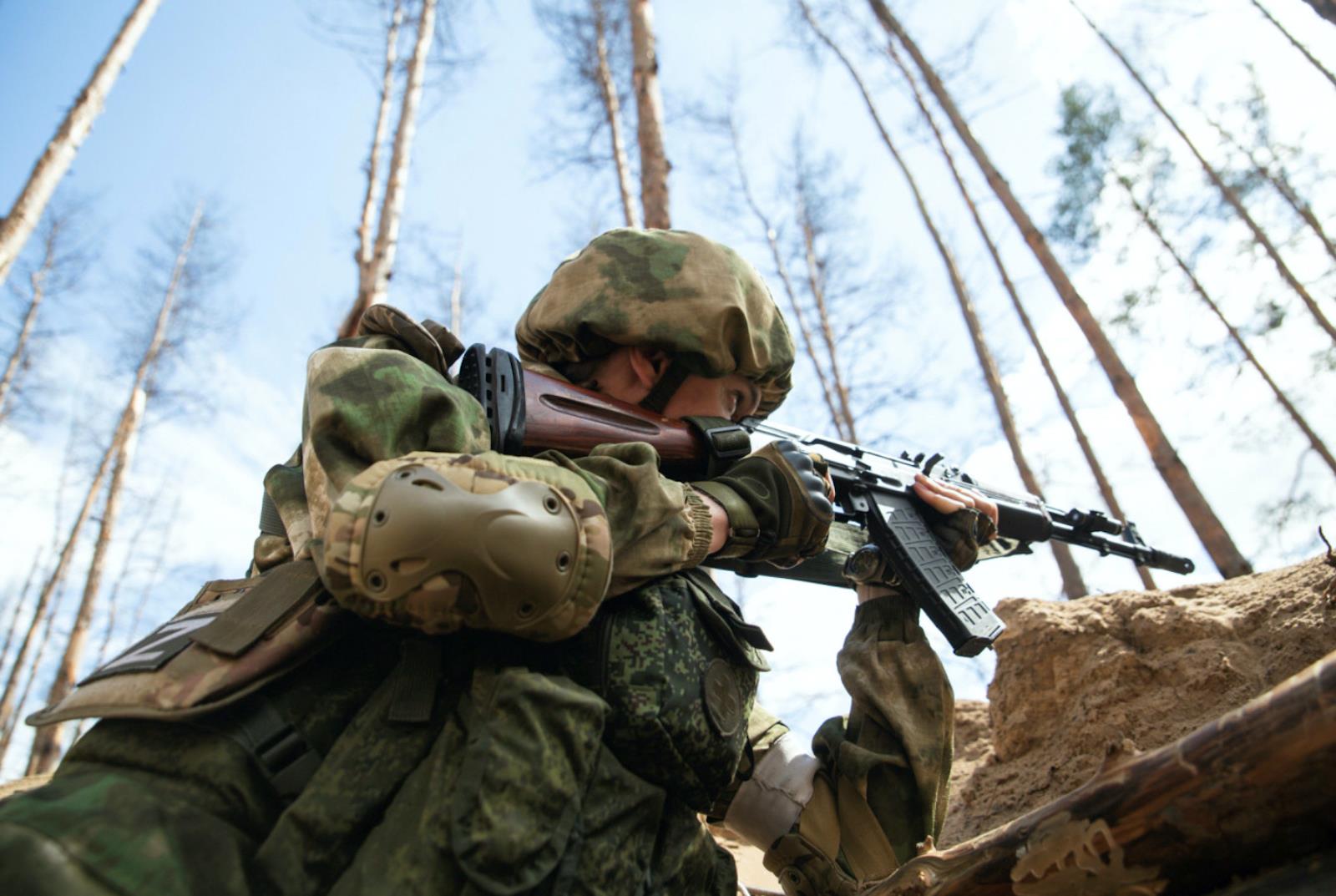 A Russian soldier takes aim in the Donbass. Image: Tass / Река Александр