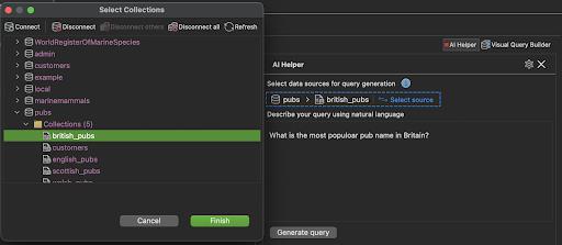 “With ai helper , even users with no prior experience with MongoDB can instantly generate complex queries,” said Thomas Zahn, CEO of 3T Software Labs.“It's a great BI tool. Now your Sales Engineer or CFO can input a data query in normal human language. For example, depending on your collection, you might type:“What is the most popular pub name in Britain?” The AI Helper, using GPT 3.5 parses the question and, back comes the scripted out mongoshell query, ready to run.”