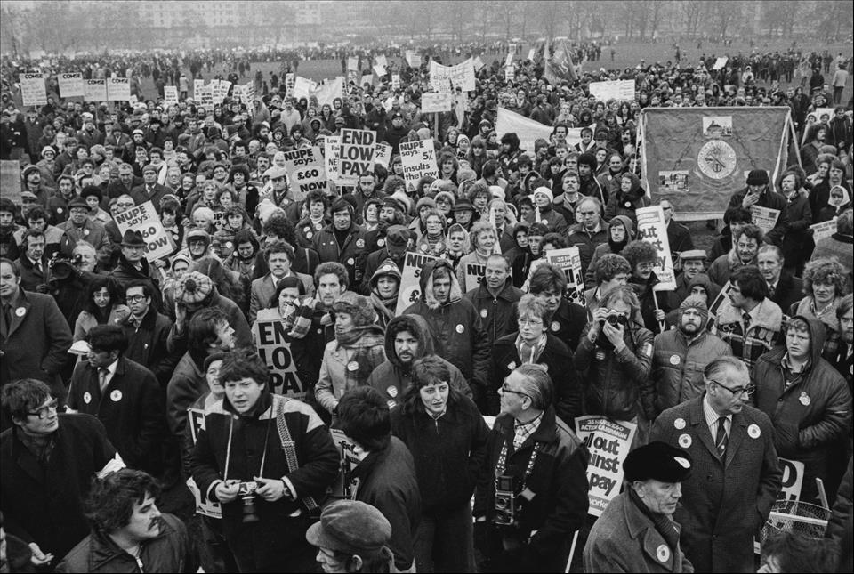 Winter of discontent: striking British workers marching in London against the Labour government's 5% limit for pay rises, 1979. Getty Images Defending living standards
