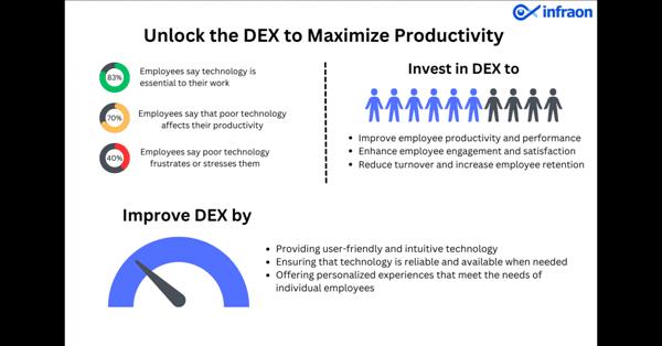DEX aims to provide employees with positive digital experiences. Where they meet often determines how successful the digital workplace can be” - Arun Prasath RLOS ANGELES, CALIFORNIA, UNITED STATES, April 13, 2023/einpresswire.com / -- Infraon DEX (digital employee experience ) is the latest product offering of Infraon Corp – a leading US-based provider of SaaS-based ITOPs products and solutions. It is equipped with fully integrated ITSM capabilities to overcome the biggest challenges faced by fast-growing companies, such as lack of micro/macro insights, non-collaborative reactive tools, heavy training needs, and more.