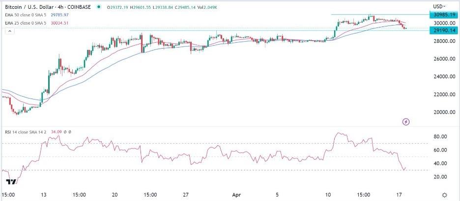 Bitcoin has lost momentum as investors reflect on the hawkish statement by Fed's Christopher Waller on the next actions. It also retreated as the US dollar index jumped and as traders started taking profits after the recent rally. The BTC/USD pair dropped to a low of 29,365, the lowest level since April 10 of this year.US dollar index rallyThe BTC/USD pair retreat coincided with the strong comeback of the US dollar. The closely-watched US dollar index bounced back from last week's low of $100.3 to $101.80 after Chris Waller warned that the Fed has more work to do in its battle against inflation.His statement came two days after the Federal Reserve published minutes of its March meeting. Those minutes showed that many Fed officials were concerned about the state of the economy because of the banking crisis.As a result, some of those officials wanted the bank to pause its rate hikes in March. Therefore, most analysts predicted that the Fed would start pausing its rate hike cycle in the coming months. An end to interest rate hikes will be bullish for Bitcoin and other risky assets like stocks.The BTC/USD pair also declined after the latest bank earnings from the United States. Results so far showed that most big banks are doing well, helped by higher interest rates and increased deposits after the collapse of Silicon Valley Bank and Signature Bank. In the past few weeks, Bitcoin has moved in the opposite direction as banking stocks. It jumped sharply after the collapse of Signature and SVB. BTC/USD technical analysisBitcoin has been in a strong upward trend in the past few months, which saw it climb to the highest level since June last year. It has now pulled back and moved below the important support level at 30,000. It has also crossed the 25-period and 50-period moving averages while the Relative Strength Index (RSI) has dropped to the oversold level. The pair has also made a break and retest pattern, which is usually a sign of continuation. Therefore, while more downside is possible, the pair will likely have a bullish breakout in the near term. If this happens, it will likely retest the year-to-date high of 30,965. On the other hand, a move below the support at 28,500 will invalidate the bullish view.Ready to trade our
