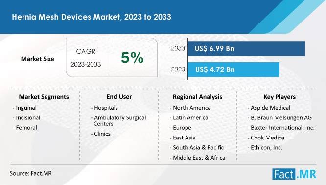Fact.MR, in its new offering, presents an unbiased analysis of the global hernia mesh devices market, presenting historical demand data (2018 to 2022) and forecast statistics for the period of 2023 to 2033.