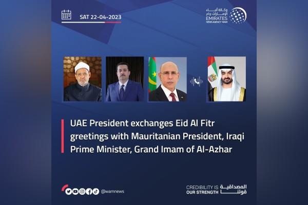 UAE President Exchanges Eid Al Fitr Greetings With Mauritanian President, Iraqi Prime Minister, Grand Imam Of Al-Azhar