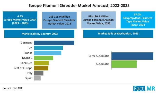 Fact.MR, in its new report, offers an unbiased Market Analysis of Europe filament shredder, Sales, Europe filament shredder, and analyzing forecast statistics through 2033 and beyond. The study reveals growth projections on the of various criteria.